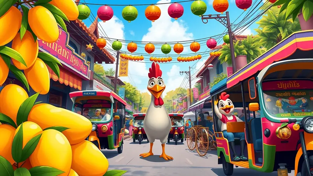 ที่ Chicken Dash เราสร้างเกมที่สะท้อนถึงวัฒนธรรมไทย ทีมงานของเราขอเชิญคุณเข้าร่วมทดสอบเบต้าและสนุกไปกับการเก็บมะม่วงพร้อมหลบรถตุ๊กตุ๊กในบรรยากาศอาร์เคดที่เต็มไปด้วยสีสัน!